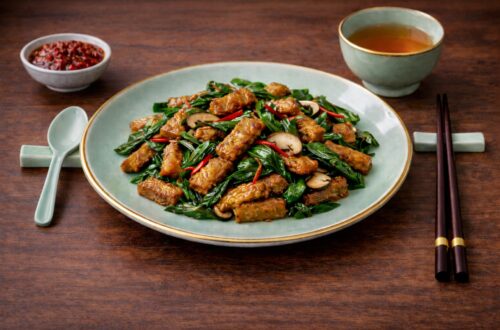 Weekly Buddhist Diet: Thai Basil Vegan Duck Third week of December 2025 Summary: Thai Basil Vegan Duck is a vibrant and aromatic plant-based stir-fry inspired by authentic Thai cuisine. Made with chewy, protein-rich vegan duck slices and fresh Thai Holy Basil, the dish delivers a perfect balance of herbal fragrance, gentle heat, and savory depth. The high heat of stir-frying allows the vegan duck to absorb the sauce quickly, while colorful bell peppers and mushrooms add texture, nutrients, and visual appeal. The flavor foundation comes from soy sauce, vegan oyster sauce, a touch of sugar, and chili—creating a savory, slightly sweet, and refreshing taste profile typical of Thai street-style cooking.…