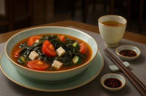 Weekly Vegetarian: Tomato, Seaweed, and Tofu Soup Fourth week of September 2025 Summary:Tomato, Seaweed, and Tofu Soup is a light and refreshing vegan soup that’s quick to make yet packed with nutrition. The tangy sweetness of tomatoes blends perfectly with the umami flavor of seaweed and the silky texture of tofu. Tomatoes are rich in vitamin C and lycopene, known for their antioxidant properties; seaweed is loaded with iodine, iron, and minerals that support thyroid and blood health; while tofu offers a great source of plant-based protein. This soup is perfect for a light meal, especially during hot seasons or when you want something easy on the stomach. Serve it…