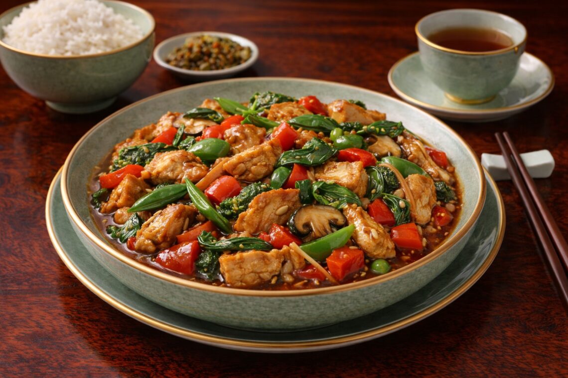 Weekly Buddhist Diet: Basil Stir-Fried Vegetarian Chicken Week 1 of January 2026 Summary: Basil Stir-Fried Vegetarian Chicken is a fragrant and light plant-based stir-fry that highlights the herbal aroma of fresh basil combined with protein-rich vegetarian chicken. The plant-based chicken has a firm yet tender texture that absorbs sauces well, creating a satisfying bite without heaviness. Fresh basil adds a bright, peppery fragrance that elevates the dish and brings balance to the savory seasoning. Bell peppers can be added for extra color, crunch, and nutrients, making the dish both visually appealing and nutritionally balanced. From a nutritional perspective, vegetarian chicken provides clean plant protein with low fat content, while basil…