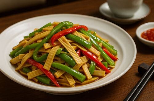 Crunchy lotus root paired with savory peanuts creates a delightful texture and unique taste.