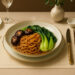 香菇含有丰富的多糖和植物蛋白,青菜富含维生素C与纤维素,这道面条不仅低脂高纤,还能提升免疫力。饭前喝一小杯温水,有助于促进肠胃蠕动,更好吸收这份纯素营养餐。