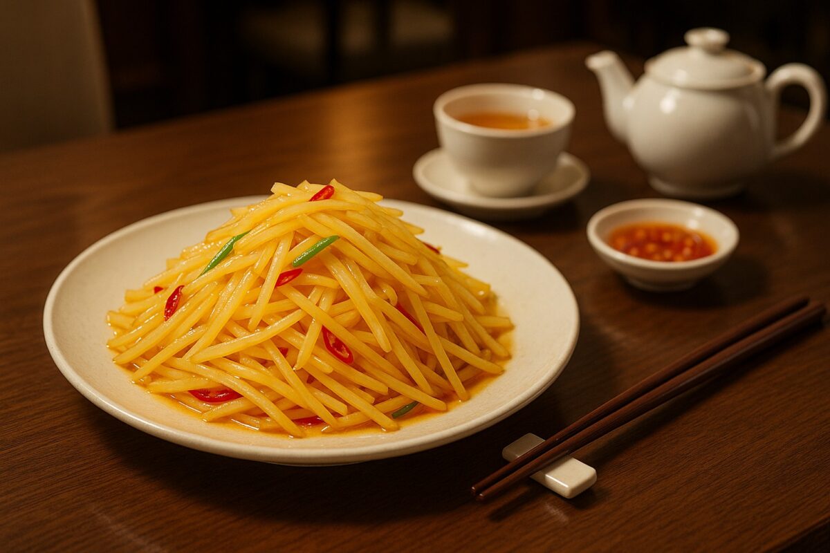 5. 装盘享用: 待土豆丝微微变软但仍保持脆感时,即可关火,盛出装盘享用。