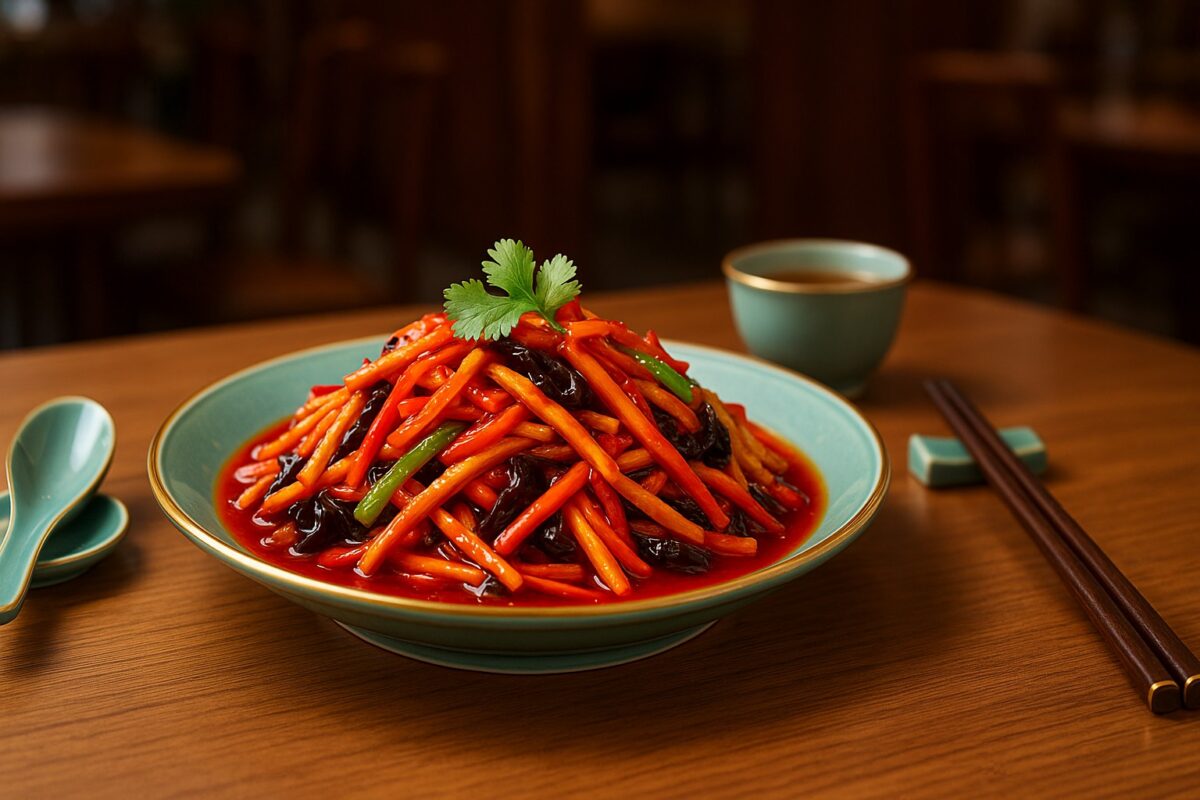 Tofu provides high-quality plant protein; wood ear mushrooms support digestion; carrots strengthen immunity. This aromatic Sichuan dish boosts appetite while keeping the meal light and balanced.
