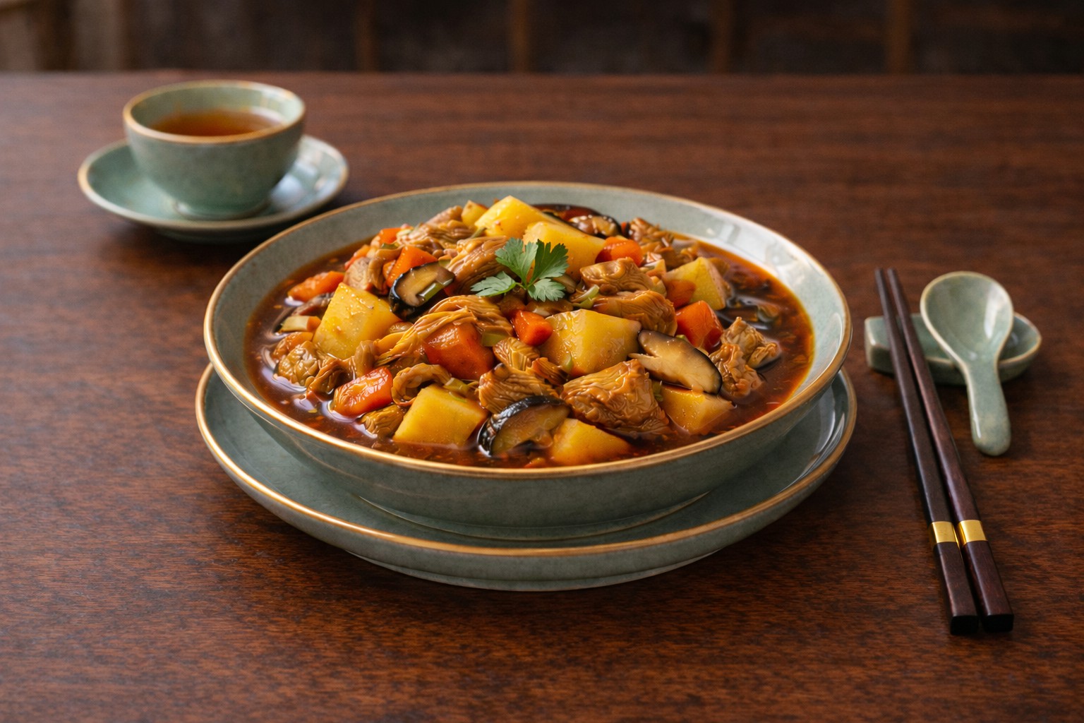 Bean curd sticks supply clean protein and calcium; potatoes provide energy and fullness; mushrooms strengthen immunity. This dish warms the stomach and nourishes the body—perfect for weekly plant-based dining.