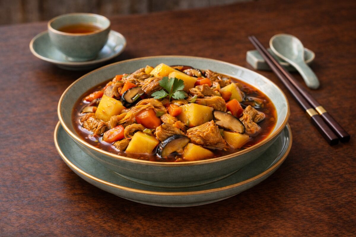这道菜适合作为素食餐桌上的主菜,也很适合与米饭、杂粮或清粥搭配。腐竹提供优质蛋白,是素食者补充能量的良好来源;土豆含有复合碳水与钾元素,可提供持久饱腹感与稳定体力。整道菜烹饪过程简单,只需准备好食材后小火慢炖,即可呈现家庭式的暖心料理,是全年皆宜、老少皆爱的健康素食炖菜。