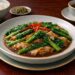 芥藍牛河粉是一道源自粵式茶餐廳與街頭小炒的經典河粉料理,在素食版本中以爽滑的河粉與清香微苦的芥藍為主角,呈現出清爽卻不失鍋氣的風味。河粉柔軟順滑,能夠很好地吸附醬香,而芥藍在快火翻炒後依然保持脆嫩口感,略帶回甘,恰好中和河粉的厚實感,使整體口味清爽平衡。透過高溫快炒,河粉表面略帶焦香,形成粵式炒粉特有的香氣。