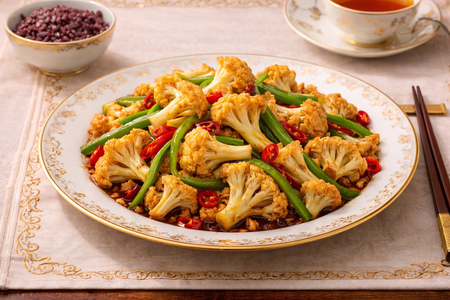 從營養角度來看,花菜富含膳食纖維、維生素C以及多種抗氧化成分,有助於增強免疫力並促進消化。採用少油快炒的方式,可以最大程度保留花菜的營養和脆嫩口感,同時減少油脂攝入,使菜品更加健康。乾鍋花菜製作簡單,卻能呈現出濃郁香氣和滿足的口感,是家庭日常餐桌中非常受歡迎的一道素食熱菜。