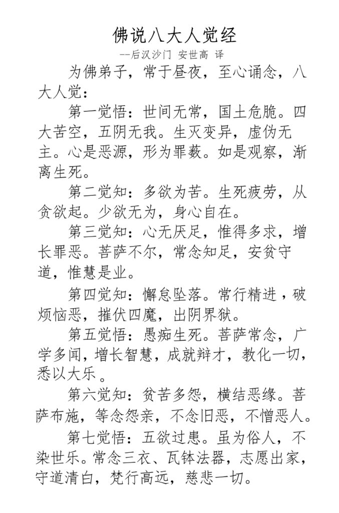 Scripture Reciting The Sutra on the Eight Realizations of the Great Beings said by Buddha The Sutra on the Eight Realizations of the Great Beings said by Buddha佛說八大人覺經 Post Views: 190