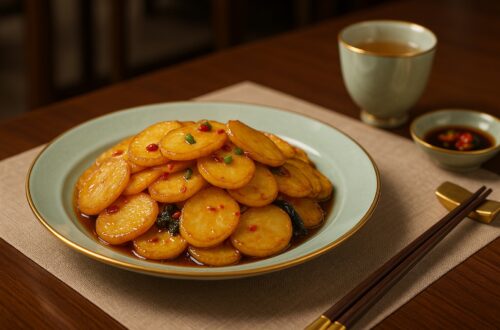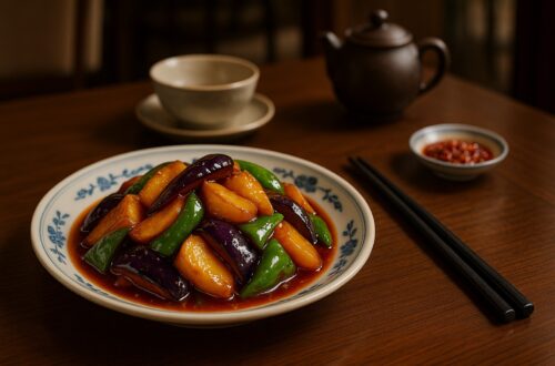 Weekly Buddhist Diet: Di San Xian (fried potato, green pepper and eggplant) Summary: Di San Xian is a beloved Northeastern Chinese dish made from three humble, earthy vegetables: eggplant, potato, and green bell pepper. The name “Three Fresh” refers not to strong sauces, but to the rich natural flavor released when these vegetables are fried and stir-fried together. Potatoes provide fiber and slow-digesting carbs for sustained energy; eggplants contribute antioxidants like anthocyanins for heart and vascular health; green peppers add a fresh, slightly spicy note and a boost of vitamin C. The traditional method involves frying the vegetables first, preserving their tender interiors and golden surfaces. A quick stir-fry with…