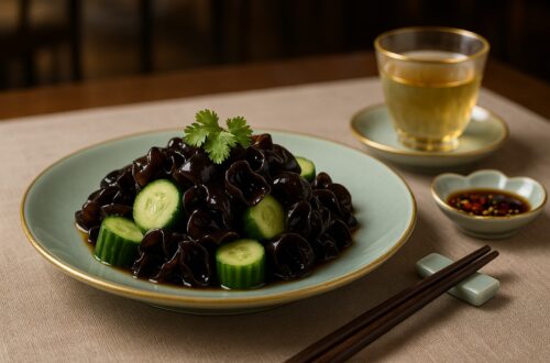 Weekly Buddhist Diet: Cold Dressed Black Fungus and Cucumber Second week of September 2025 Dish Summary:Cold Dressed Black Fungus and Cucumber is a refreshing vegetarian salad that emphasizes the natural flavors of its ingredients through light seasoning. Black fungus has a crisp texture and is rich in dietary fiber, iron, and minerals that help improve digestion, support blood circulation, and boost overall health. Cucumber, high in water content and vitamin C, provides a cooling effect, promotes hydration, and helps nourish the skin, making it an ideal choice for summer wellness. When combined, the two ingredients complement each other both nutritionally and in taste, creating a dish that is light, appetizing,…